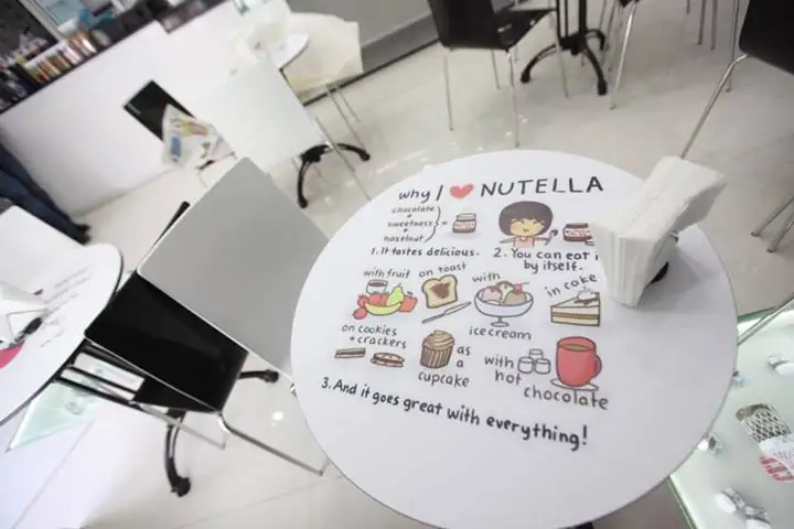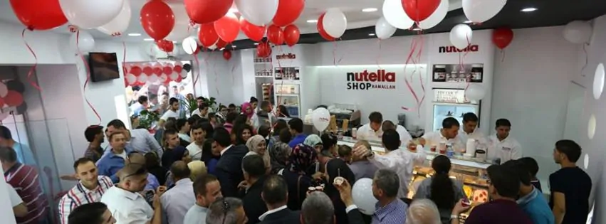 “L’idea ci è venuta una sera mentre facevamo in privato una scorpacciata di Nutella” ha dichiarato all’ANSA Arin Rinawii che, insieme al partner Fuad Bazzar, ha ideato il bistrò a Ramallah. Non solo crepes e dolci farciti con Nutella ma anche pizza, e il “Nutella Kebab” che però vede la sostituzione della carne con un grande blocco di cioccolato.Ecco le foto del gustosissimo Nutella Shop di Ramallah: