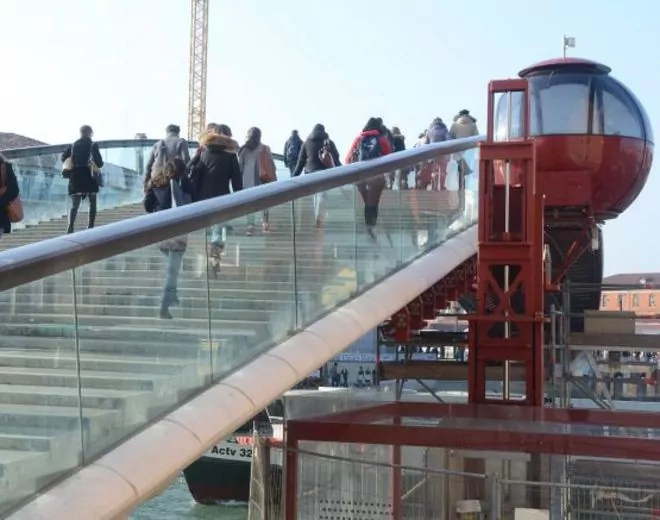 È entrata in funzione stamattina l’ovovia sul ponte della Costituzione, realizzato dall’architetto Santiago Calatrava, che collega la stazione con piazzale Roma. L’ovovia, in circa sette minuti, permetterà l’attraversamento del ponte alle persone con disabilità, impossibilitate a salire e scendere i gradini dell’opera dell’architetto spagnolo che collega le due sponde del Canal Grande.