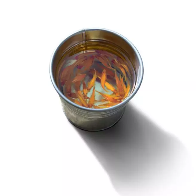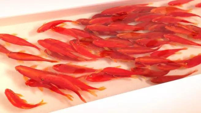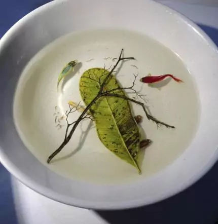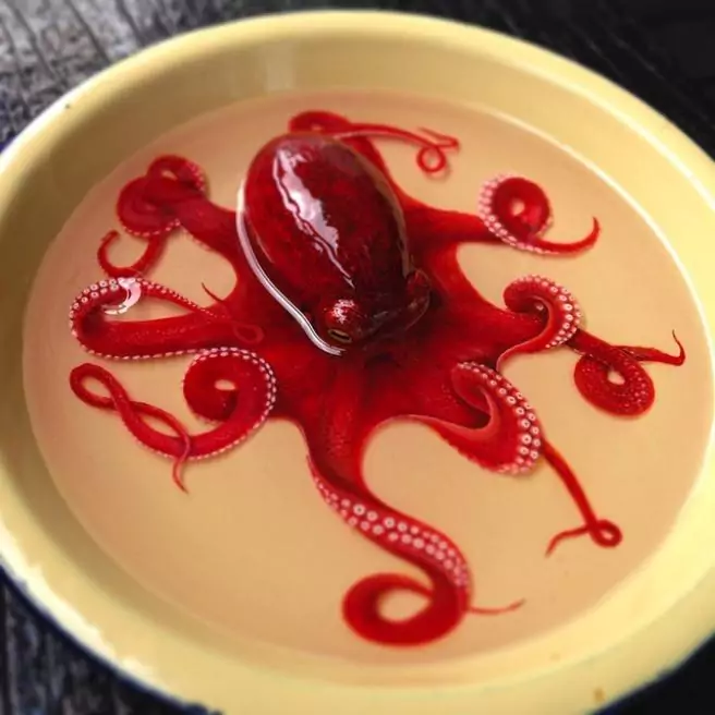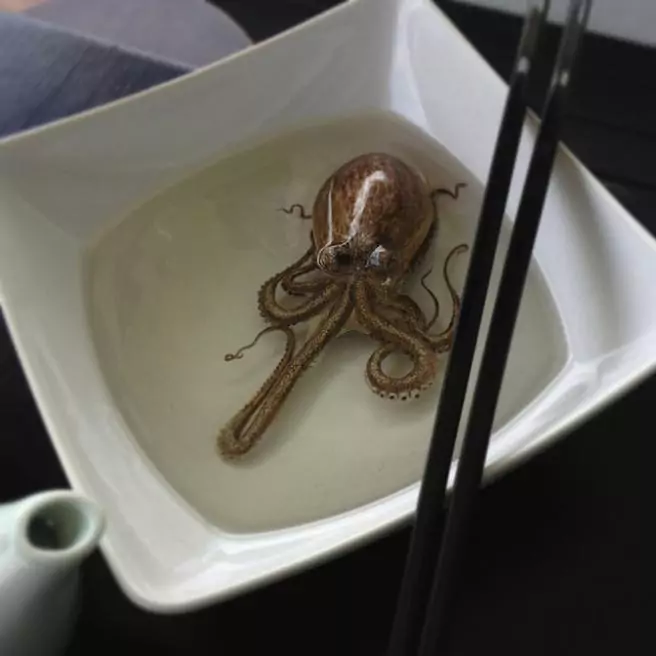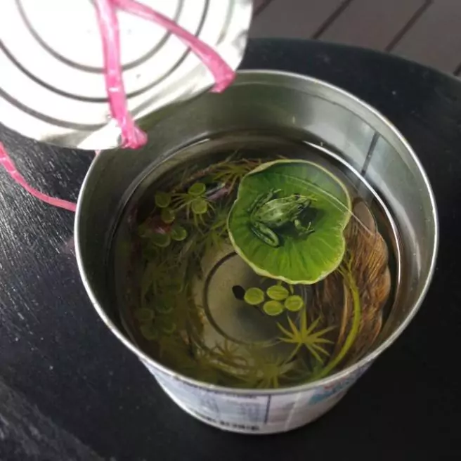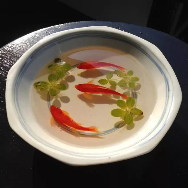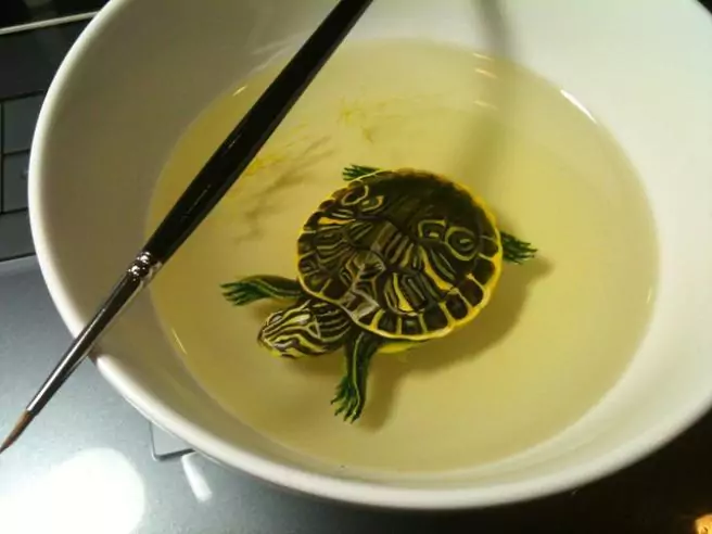 Riusuke dipinge i suoi soggetti preferiti (pesciolini rossi, tartarughe e polipi) strato per strato, alternando il disegno con strati di resina acrilica. Il risultato è incredibile!