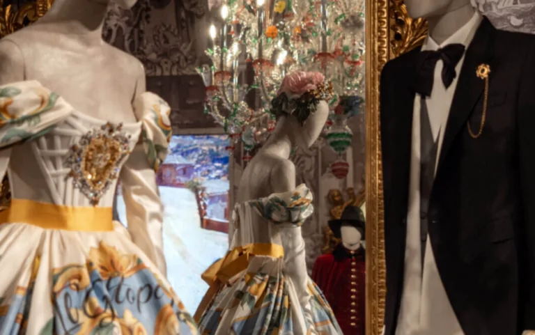 Due manichini elegantemente vestiti, uno con un abito da donna e l’altro con un abito da uomo, accolgono i visitatori all’ingresso della mostra, offrendo un’anteprima delle meraviglie che attendono all’interno. La combinazione di moda e arte promette di offrire un’esperienza sensoriale unica, celebrando la creatività e la passione che animano ogni creazione di Dolce&Gabbana.