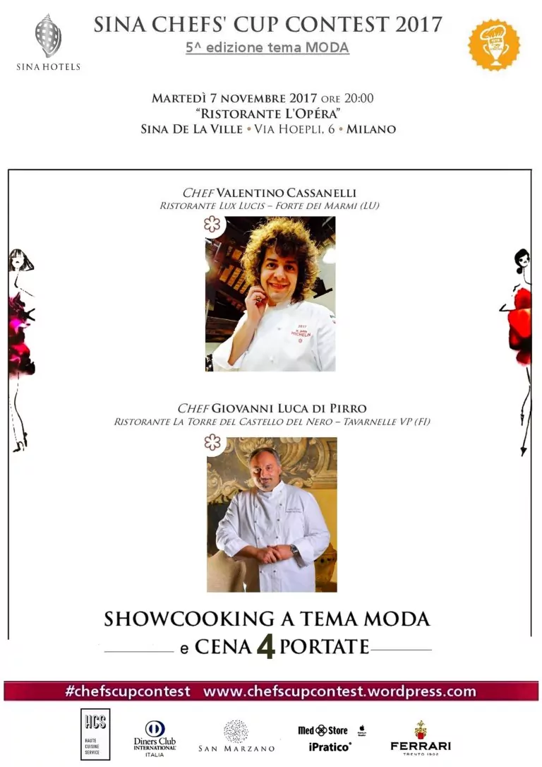 La gara all’insegna della moda tra chef stellati ha visto il via nel mese di aprile a Cortina d’Ampezzo. Sette serate che hanno avuto come palcoscenico d’eccellenza gli alberghi del gruppo SINA Hotels: Bellevue Suites & Spa a Cortina d’Ampezzo; Sina Brufani a Perugia; Sina Villa Matilde a Romano Canavese (Torino); Sina Villa Medici a Firenze; Sina Bernini Bristol a Roma; Sina Maria Luigia a Parma; Sina Centurion Palace a Venezia.