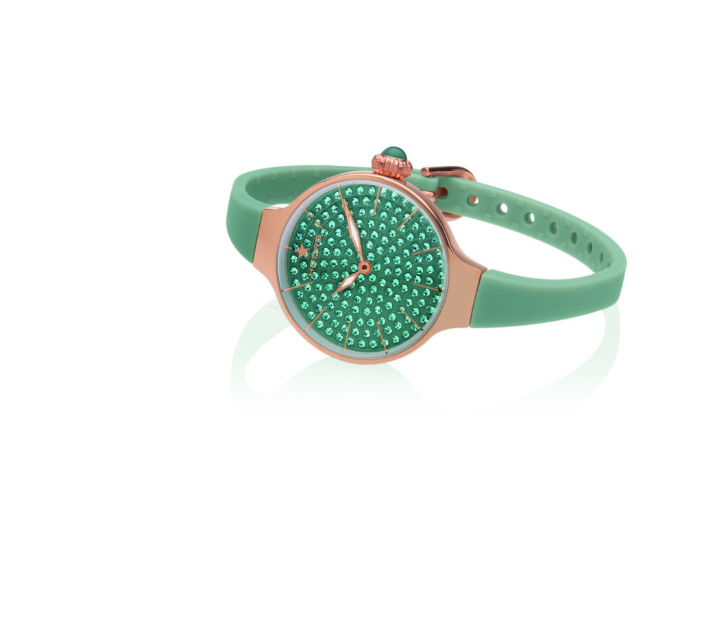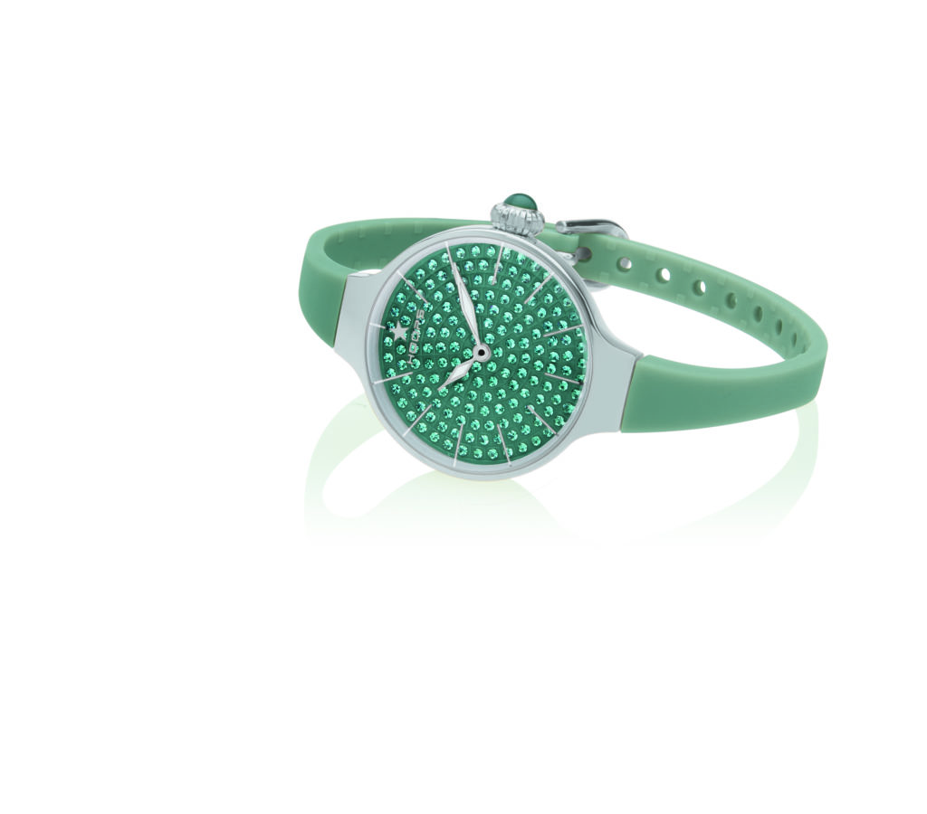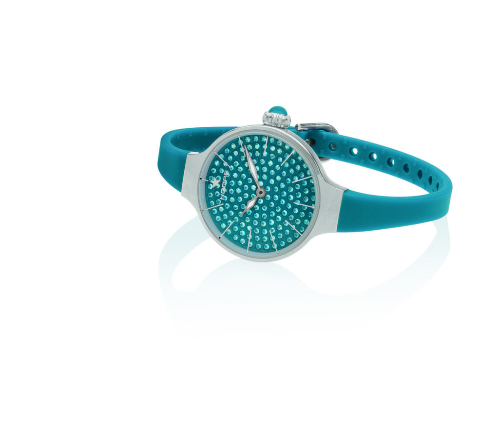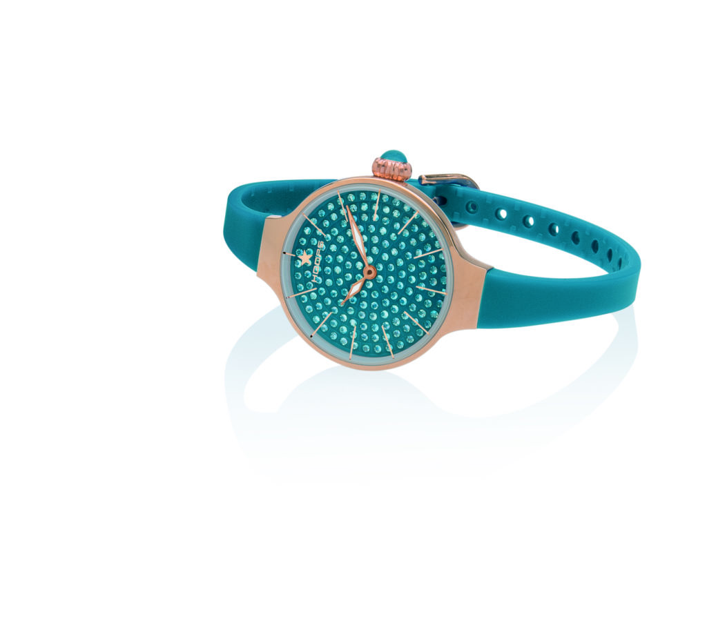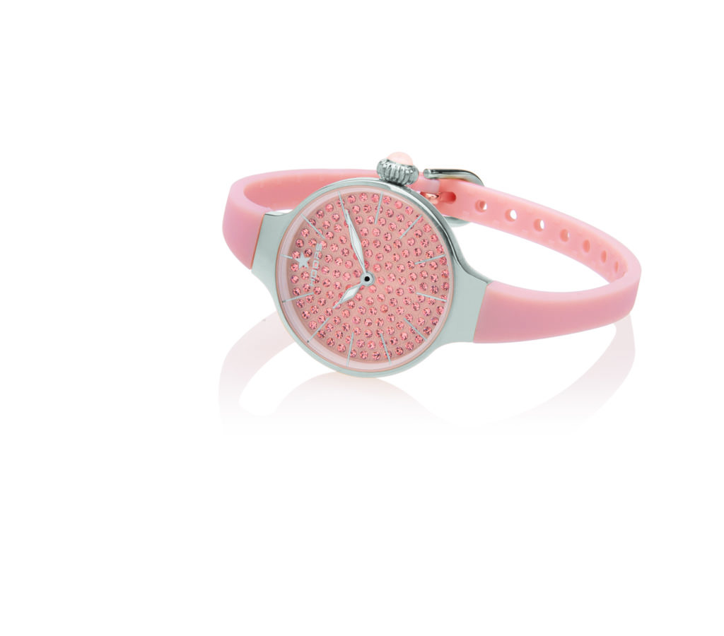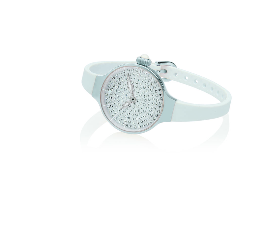 Dal bianco al nero passando per il rosa shocking ed il grigio polvere fino a salvia, ghiaccio, cipria e royal blue, sono 9 le nuances disponibili per il nuovo Cherie 160 Diamonds di HOOPS che si caratterizza per la vera e propria cascata di strass, 160 per ogni quadrante a richiamare la tinta del cinturino illuminandolo come un gioiello prezioso.