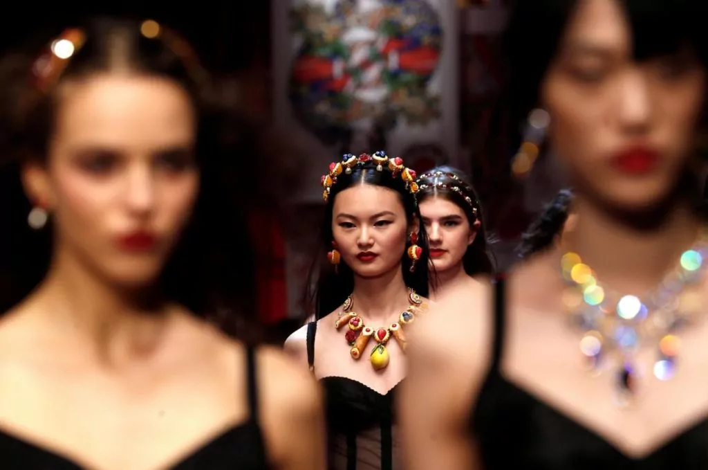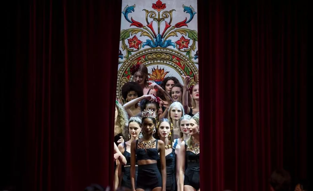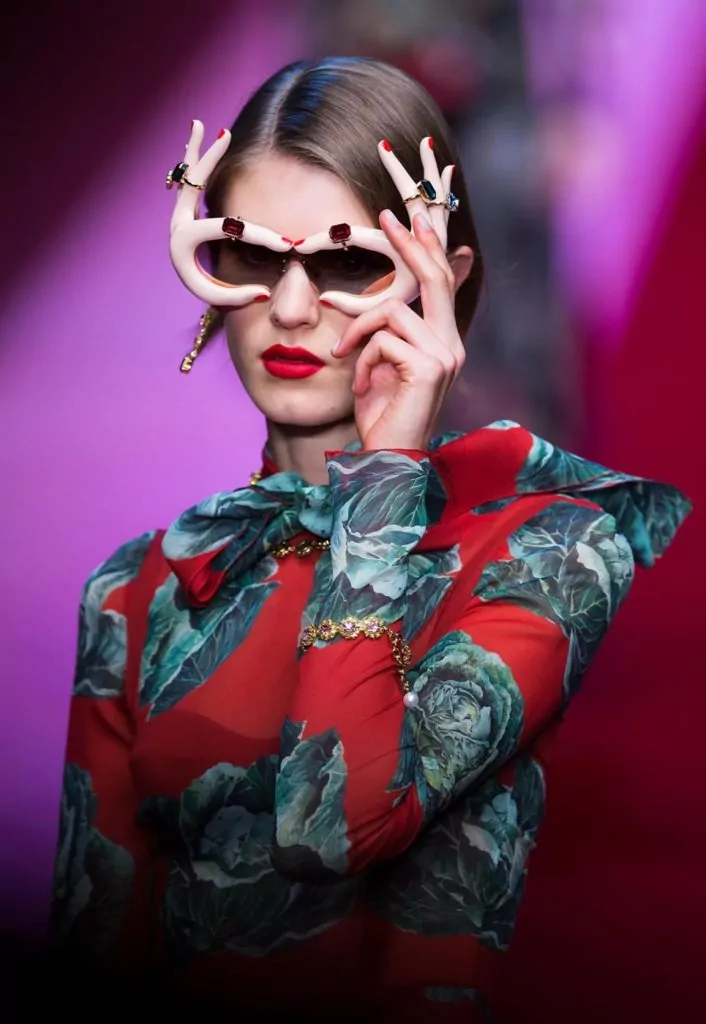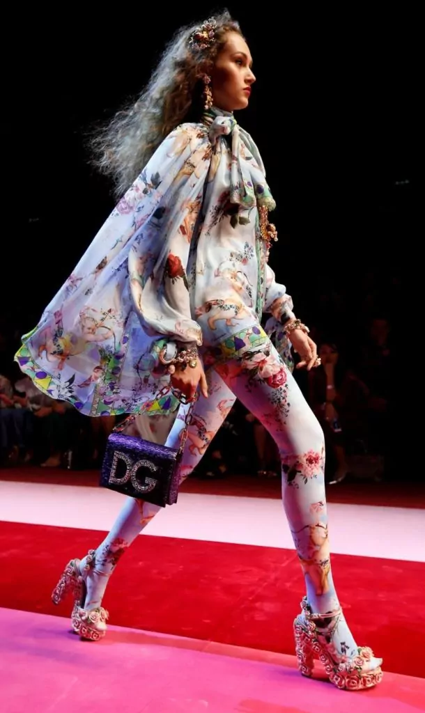 I dettagli degli accessori a colpire sono i calzini in pizzo o nylon velato abbinati a tacchi alti o il logo DG impreziosito da pietre che si ritrova sulle pochette.