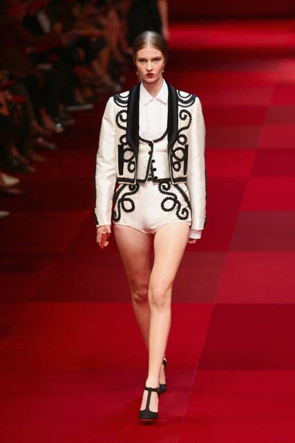 La donna di Dolce & Gabbana per la collezione primavera/estate 2015 è una donna sensuale e caliente. Alla Milano Fashion Week D&G hanno mandato in passerella una collezione barocca ad alto tasso erotico dove la Sicilia incontra la Spagna. Una collezione bellissima, con abiti a macro pois, pizzi e garofani e giacche da torero. Ecco la collezione: