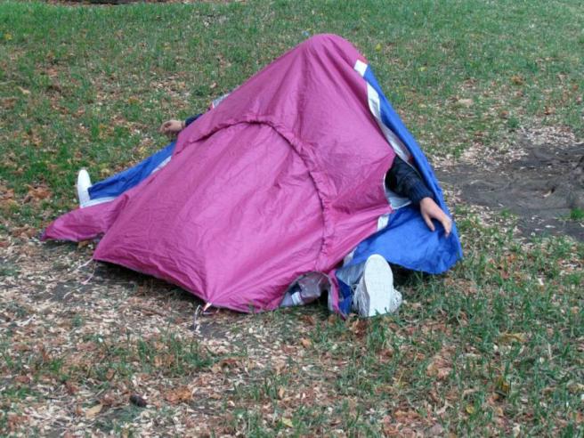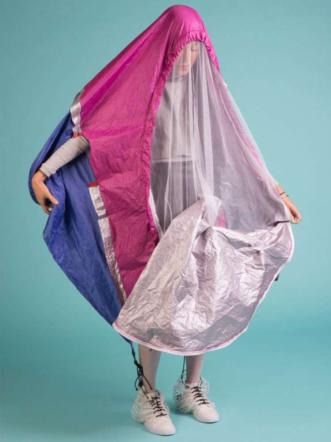 Sembrano solo delle semplici sneaker. In realtà da ciascuna scarpa può essere estratto lateralmente un tessuto impermeabile i cui lembi, congiunti con un velcro sul capo, formano una sorta di “tenda”.