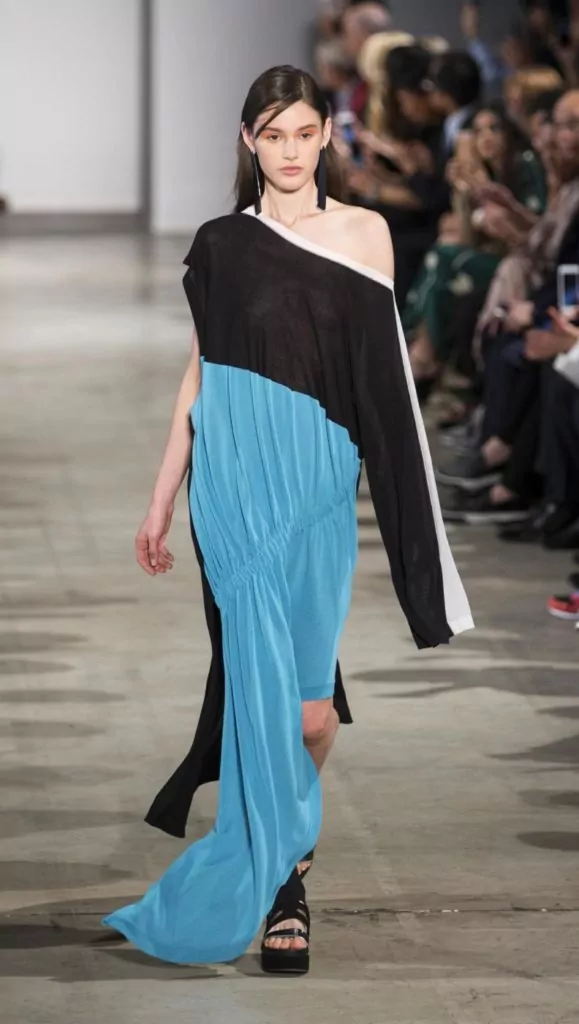 Per il beauty le scelte ricadono su capelli tirati indietro sulla nuca per essere poi lasciati sciolti sul di dietro, con un wet look che da un aria più sbarazzina; per il makeup si punta agli occhi con colori sgargianti in azzurro o verde sulle palpebre e un nude look nel restante viso, niente rossetto quindi, e nessun blush in evidenza, solo visi luminosi come la tendenza detta.