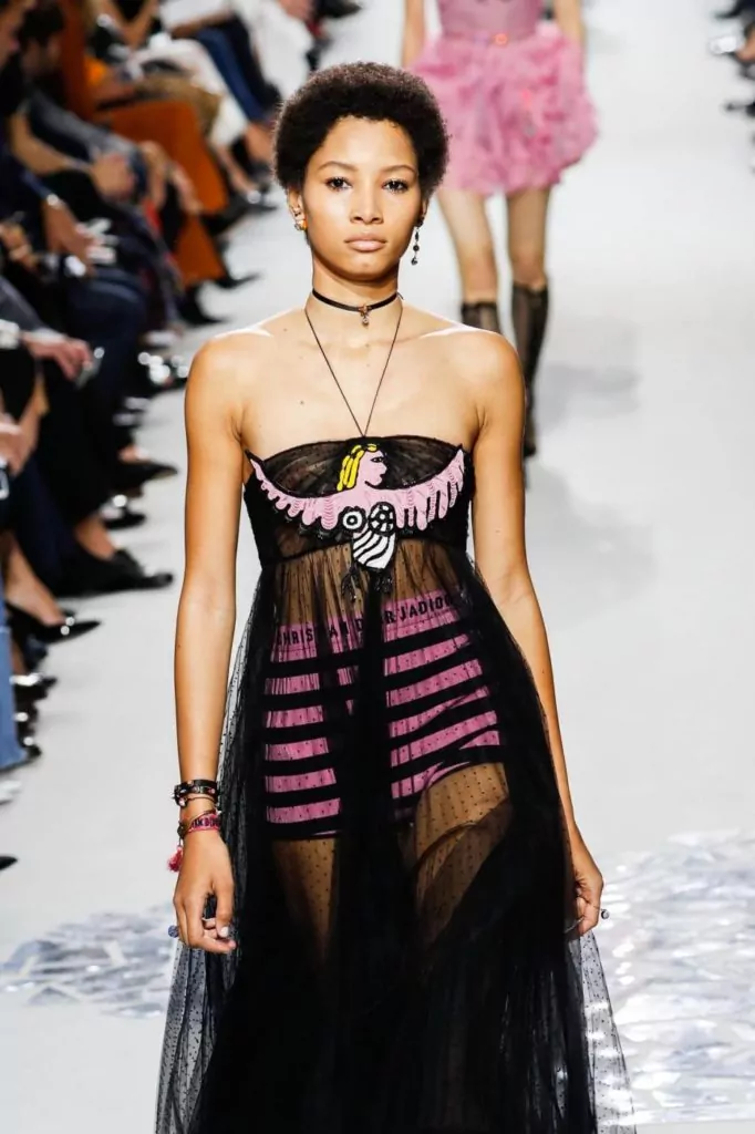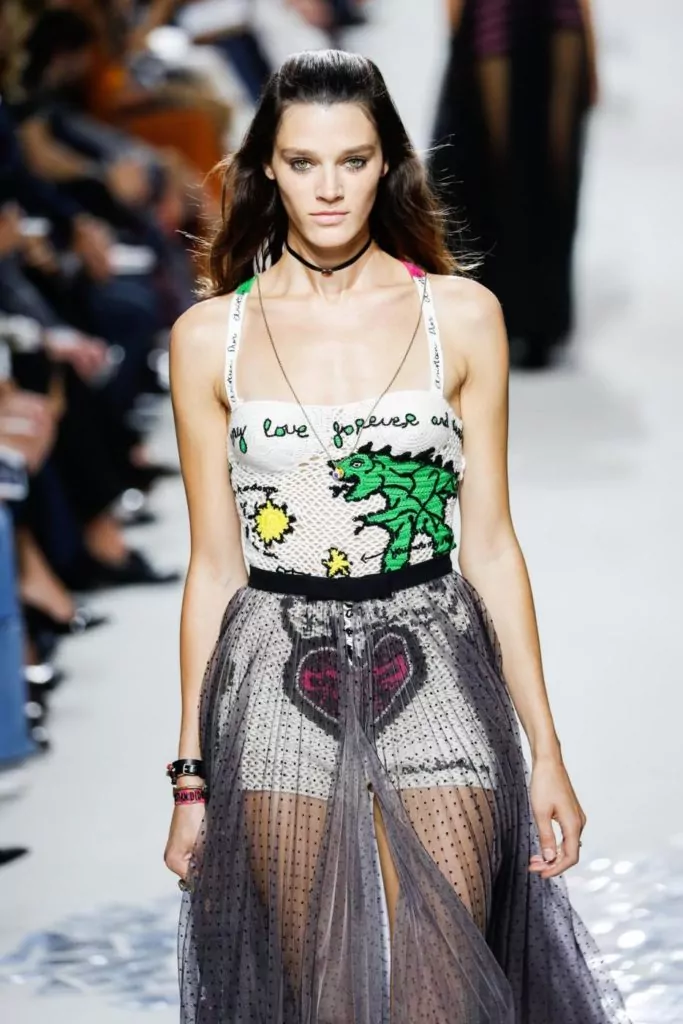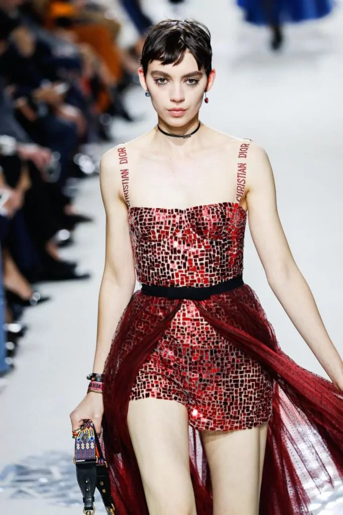 E’ un makeup leggero che non vuole essere il protagonista anche quello avvistato sui visi delle modelle in passerella per Dior; anche qui un contrasto rispetto ai lustrini e ai colori degli abiti. Unica caratteristica è la luminosità del viso, questo il beauty must have proposto dal brand; visi puliti, solo tanto mascara e un accenno di matita nera ad accentuare lo sguardo.