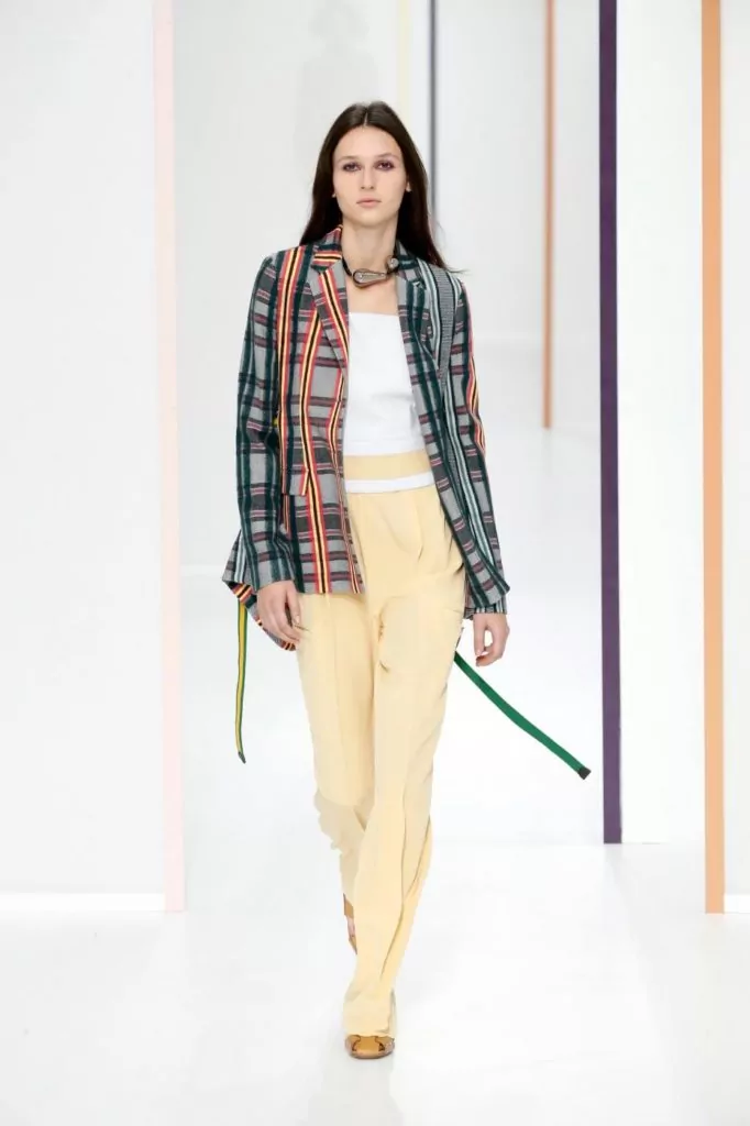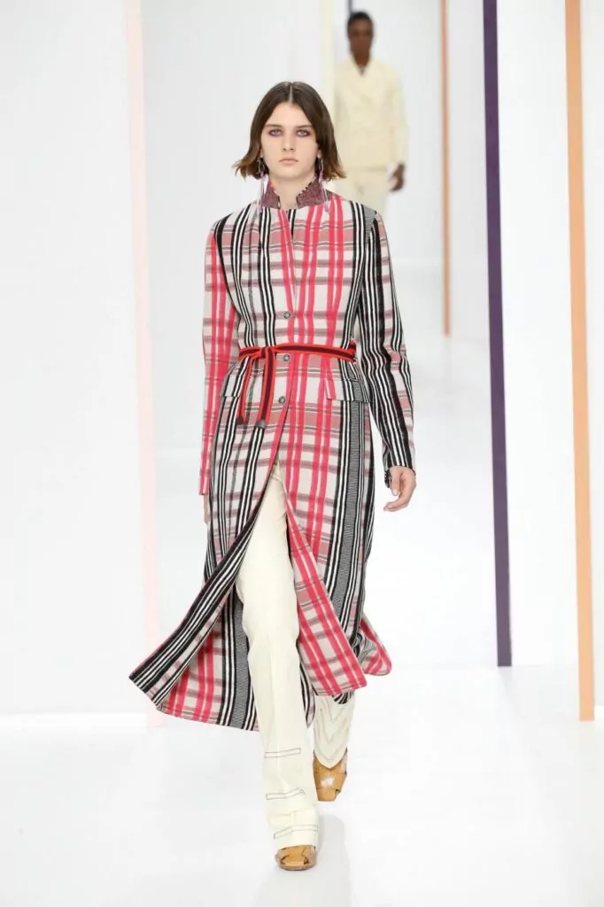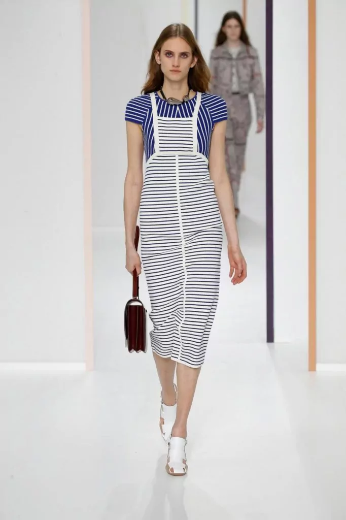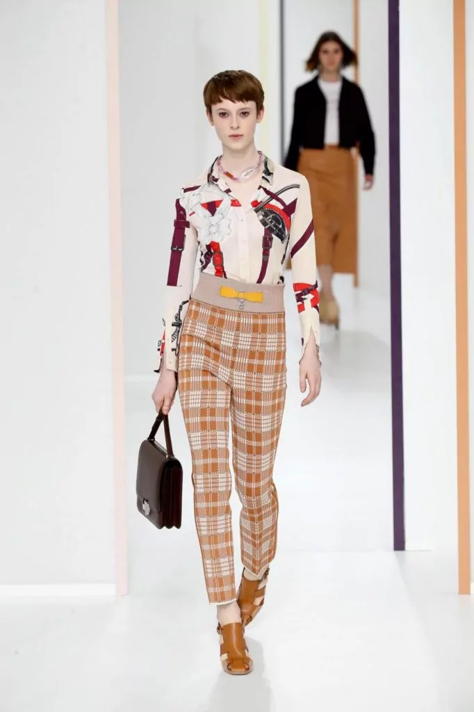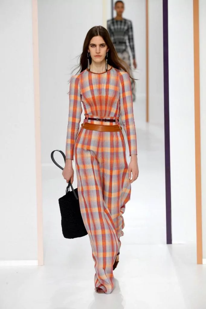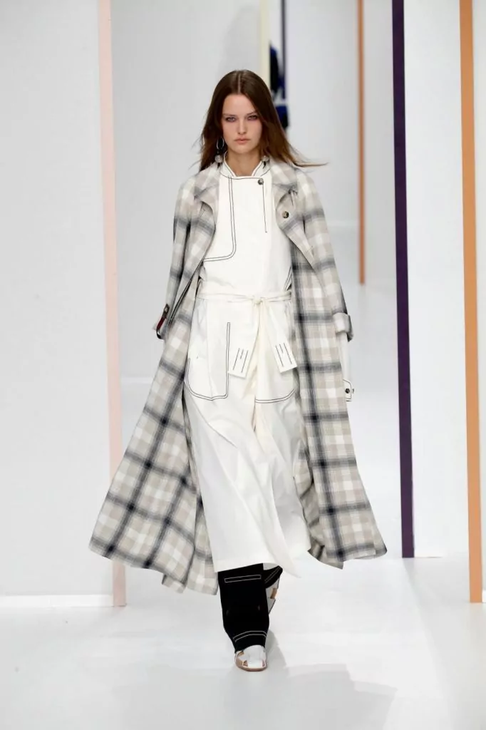E’ una collezione dall’eleganza sofisticata quella portata sulla passerella Hermes, dove sono nuance delicate a colorare gli abiti, come: verde, avorio, crema, beige, pesca, ma anche tonalità più forti come melanzana o bordeaux. Rimangono un must le mantelle, e a queste si uniscono ora anche abiti boho monocolore. Gli accessori vedono nella pelle il loro materiale principale e quindi vediamo così realizzati sia i sandali che le cartelle.