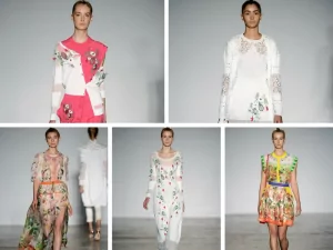 Il viaggio immaginato da Salvatore Piccione, è riflesso nelle creazioni viste nella passerella milanese, attraverso lunghi abiti candidi arricchiti da vivaci stampe tropicali e stampe grafiche di flora e fauna tropicali, i ricami preziosi di fiori esotici, i fili di lurex a ricordare i rivoli d’acqua della foresta, fino all’arrivo a destinazione, nel mitico El Dorado, che si traduce in abiti di paillettes in oro e argento con tulle ricamato con fiori.
