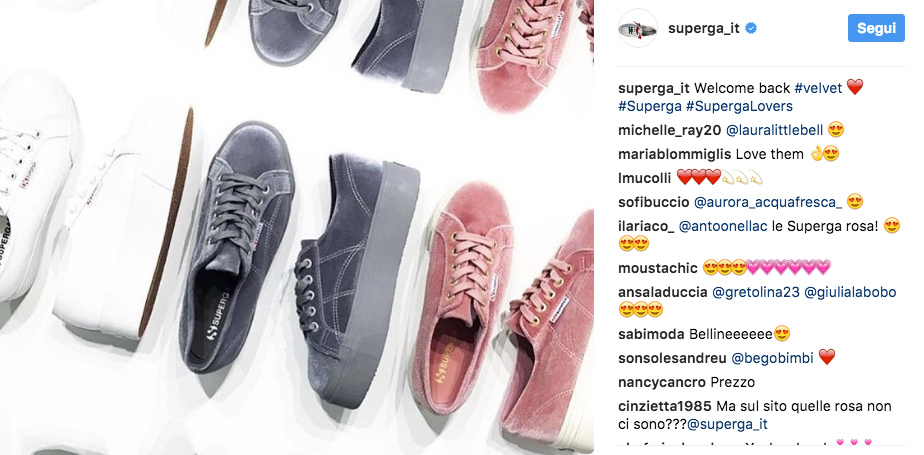 Dopo il successo della collaborazione tra i due iniziato nel 2013 Superga rinnova la collaborazione con Chiara Ferragni per questa nuova stagione ha sviluppato tre platform in cotone, velluto e raso con tinte pastello. Il modello con zeppa alta 7 centimetri, è la novita’ del brand, ma insieme a questa proposta c’è anche la versione alta 4 centimetri con suola sempre in gomma naturale vulcanizzata.