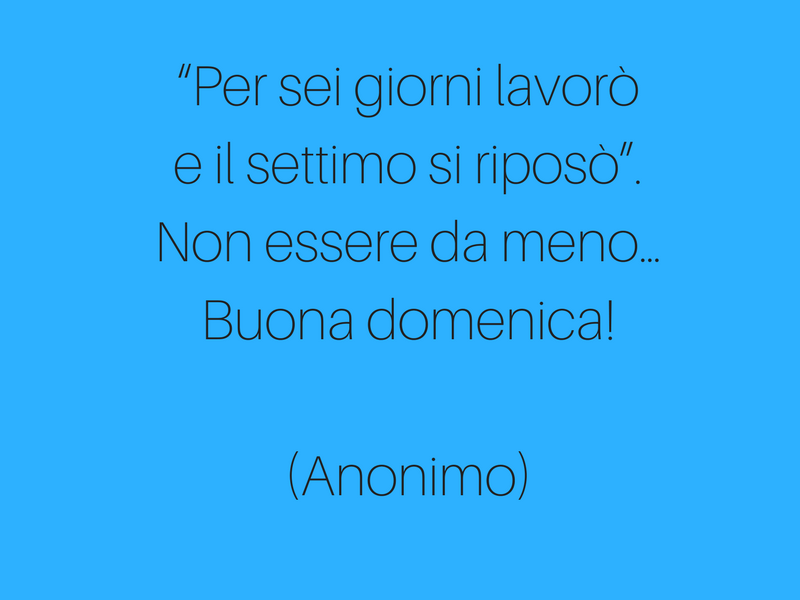 Dopo intensi giorni di lavoro, arriva finalmente la domenica, il magico giorno del meritato riposo. Nella gallery troverete una selezione di frasi ad hoc per ricordarlo e augurarlo anche ai più frenetici.