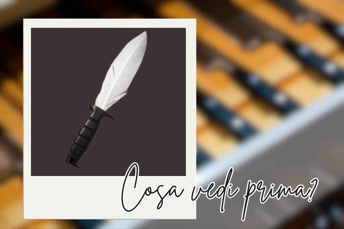 In questo caso specifico, il test si concentra su come si reagisce nei confronti di chi non suscita simpatia o con cui si ha un conflitto. L’immagine in questione offre due elementi distinti e opposti: un coltello, simbolo di tagliente schiettezza, e una piuma, emblema di delicatezza e sottilità nell’approccio. La prima cosa che si nota, senza indugi, è il punto di partenza per il profilo psicologico.