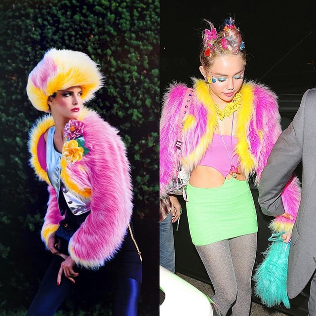 Se c’è un’artista che fa parlare di sé, quella è sicuramente Miley Cirus. Eccola in queste foto conciata, apparentemente come un clown o una maschera di carnevale. Ma i ben informati dicono l’ex stella della Disney sfoggia un vintage Chanel del 1994: ecco il confronto con Stephanie Seymour. Ringraziamo Vfiles per aver svelato l’arcano.