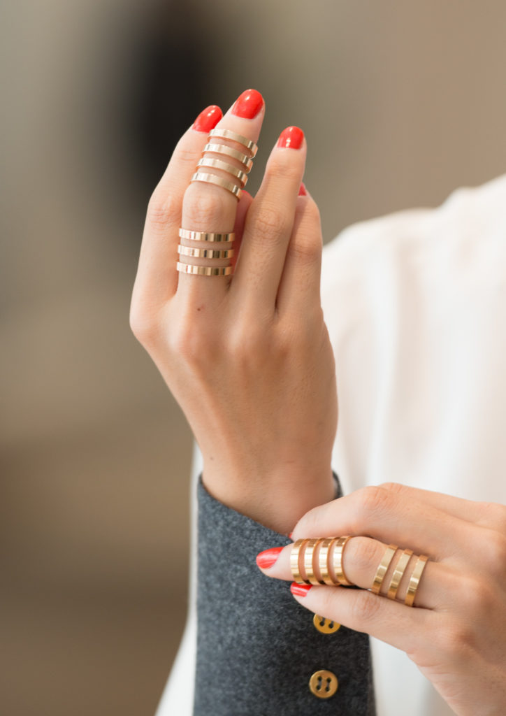 Dita in primo piano nell’ultima tendenza che spopola tra le giovanissime. Grazie agli anelli multipli su di uno stesso dito, le mani diventano protagoniste. Gli anelli d’ispirazione etnica o artistica conferiscono uno stile più giovane, meno pomposo rispetto al gioiello classico.