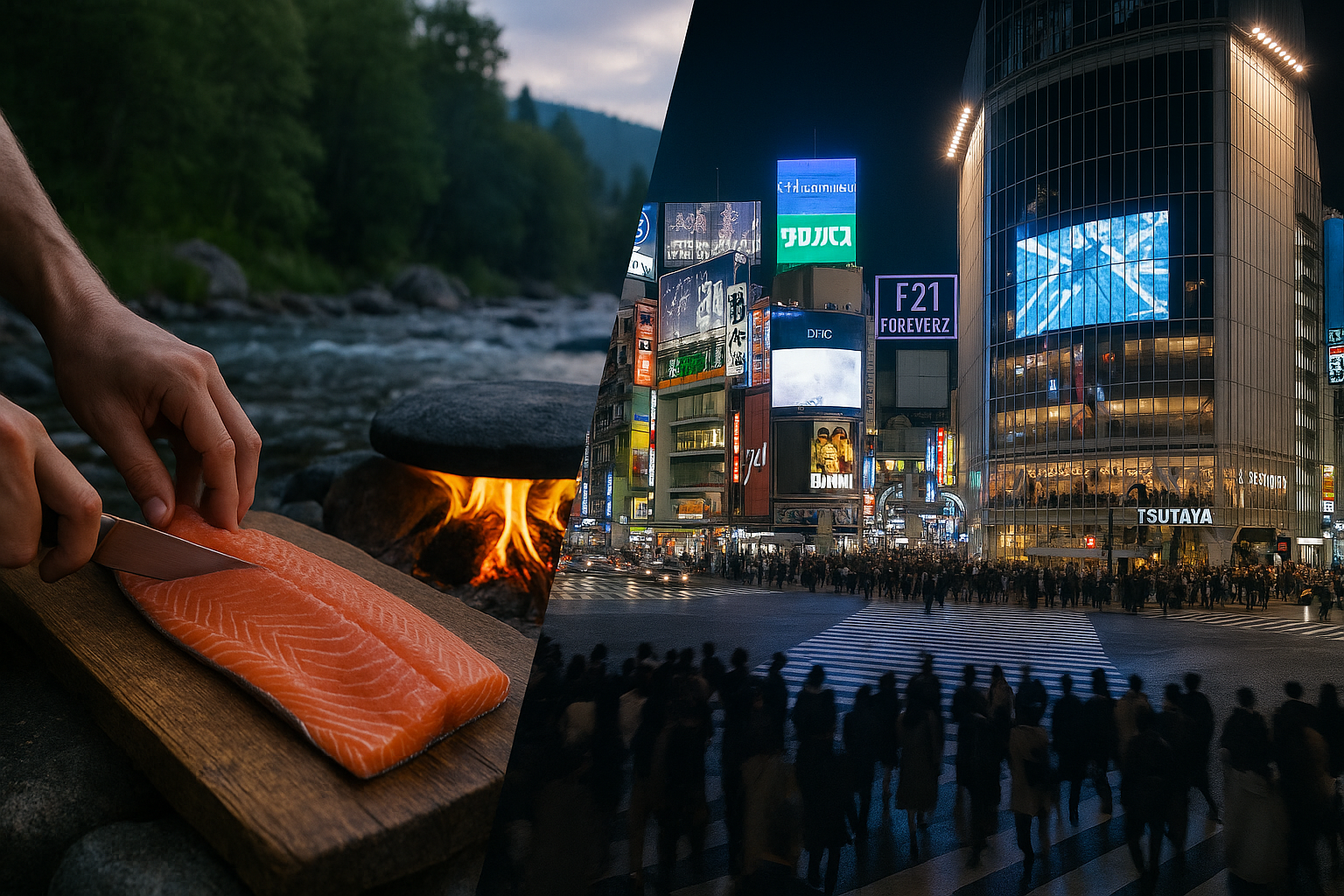 E poi, subito dopo, nei feed degli stessi giovani che sognano quelle metropoli, scorrono scene opposte: un coltello che affonda in un salmone fresco accanto a un fiume, una pietra scaldata dal fuoco, mani che cucinano in silenzio, campagne cinesi dove il tempo sembra essersi arreso. Due mondi che si sfiorano senza toccarsi: uno corre, l’altro respira.
