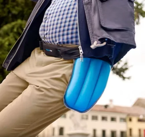 FutureAge è dotata di sensori e algoritmi avanzati che monitorano i movimenti dell’utente. In caso di caduta, l’airbag si attiva in frazioni di secondo, proteggendo il bacino e riducendo il rischio di fratture.